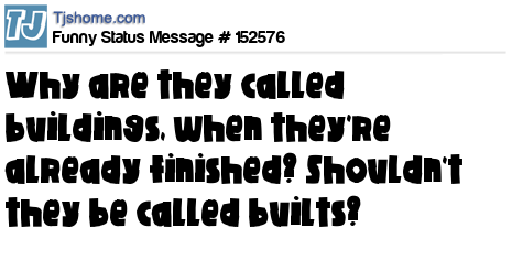 X says Why are they called buildings, when they're already finished? Shouldn't they be called builts?