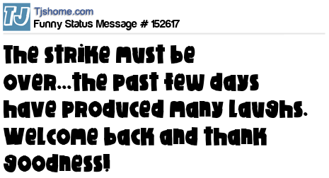 X says The strike must be over...the past few days have produced many laughs. Welcome back and thank goodness!
