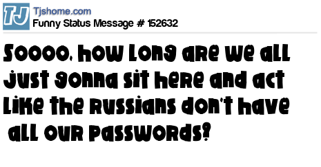 X says Soooo, how long are we all just gonna sit here and act like the russians don't have all our passwords?