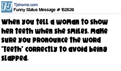 X When you tell a woman to show her teeth when she smiles, make sure you pronounce the word "Teeth" correctly to avoid being slapped.