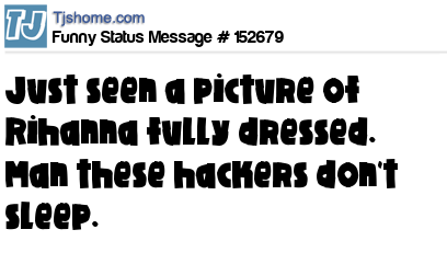 X says Just seen a picture of Rihanna fully dressed. Man these hackers don't sleep.