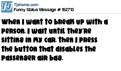 X When I want to break up with a person, I wait until they're sitting in my car, then I press the button that disables the passenger air bag.