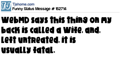 X  WebMD says this thing on my back is called a Wife, and, left untreated, it is usually fatal.