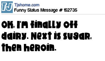 X says Ok, I'm finally off dairy. Next is sugar, then heroin.