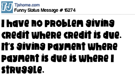 X I have no problem giving credit where credit is due. It's giving payment where payment is due is where I struggle.