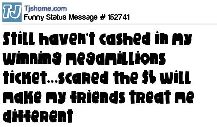 X says Still haven't cashed in my winning megamillions ticket...scared the $6 will make my friends treat me different