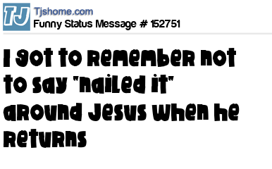 X says I got to remember not to say "nailed it" around Jesus when he returns