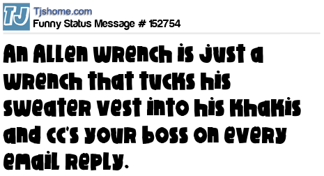 X says An Allen wrench is just a wrench that tucks his sweater vest into his khakis and cc's your boss on every email reply.