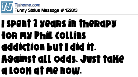 - # 209101 I spent 2 years in therapy for my Phil Collins addiction but I did it. Against all odds! Just take a look at me now!!