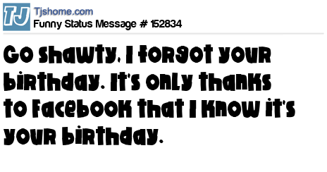 X says Go shawty, I forgot your birthday. It's only thanks to Facebook that I know it's your birthday.