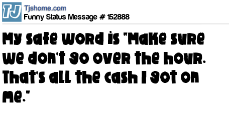 X says My safe word is "Make sure we don't go over the hour. That's all the cash I got on me."