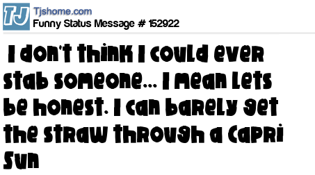 - # 96074 I don't think I could ever stab someone, I mean lets be honest I can barely get the straw in a Capri Sun