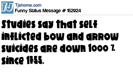 X Studies say that self inflicted bow and arrow suicides are down 1000 % since 1755.