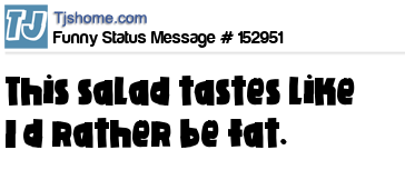 - # 165717 Diet Dedication: When the chicken on your Subway salad kinda tastes like fish, but you eat it anyways because worse comes to worst, you'll just lose a few more pounds.