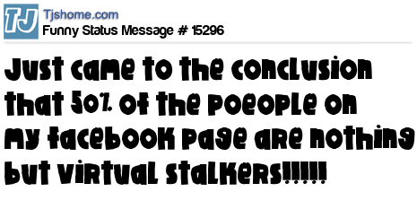 X has just came to the conclusion that 50% of the poeople on my facebook page are nothing but virtual stalkers!!!!!
