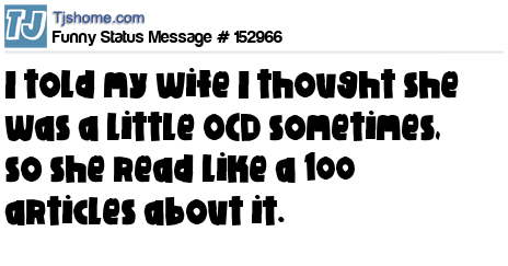 X I told my wife I thought she was a little OCD sometimes, so she read like a 100 articles about it.