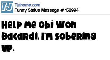 X says Help me Obi Won Bacardi, I'm sobering up.