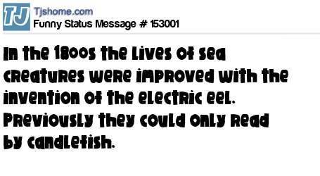 X In the 1800s the lives of sea creatures were improved with the invention of the electric eel. Previously they could only read by candlefish.