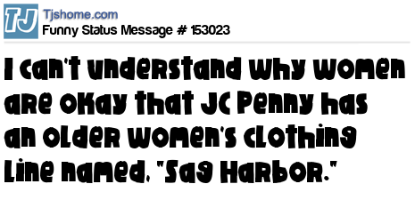 - # 208415 I can't understand why women are okay that JCPenney has an older women's clothing line named, "Sag Harbor."