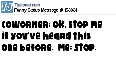 X says Coworker: OK, stop me if you've heard this one before. Me: Stop.