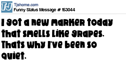 X says I got a new marker today that smells like grapes. Thats why I've been so quiet.