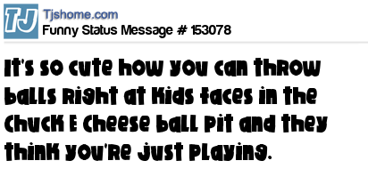 X says It's so cute how you can throw balls right at kids faces in the Chuck E Cheese ball pit and they think you're just playing.