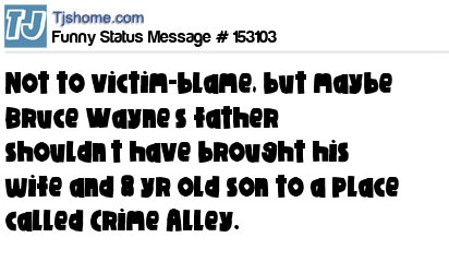 X says Not to victim-blame, but maybe Bruce Wayne’s father shouldn’t have brought his wife and 8 yr old son to a place called Crime Alley.