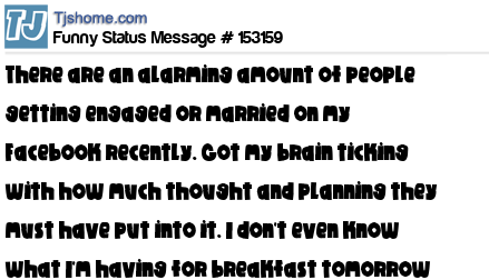 X There are an alarming amount of people getting engaged or married on my Facebook recently. Got my brain ticking with how much thought and planning they must have put into it. I don't even know what I'm having for breakfast tomorrow let alone get married
