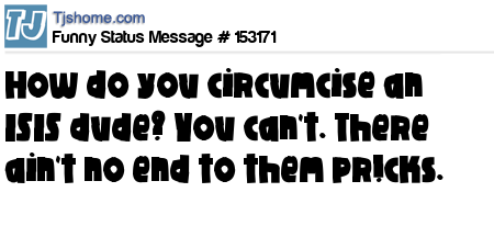 X says How do you circumcise an ISIS dude? You can't. There ain't no end to them pr!cks.