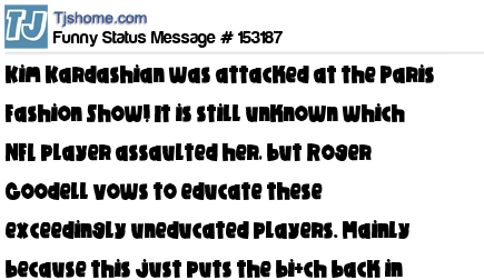 X says Kim Kardashian was attacked at the Paris Fashion Show! It is still unknown which NFL player assaulted her, but Roger Goodell vows to educate these exceedingly uneducated players. Mainly because this just puts the bi+ch back in the spotlight.