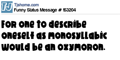 X For one to describe oneself as monosyllabic would be an oxymoron.