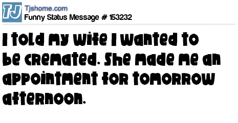 X says I told my wife I wanted to be cremated. She made me an appointment for tomorrow afternoon.