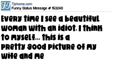 X says Every time I see a beautiful woman with an idiot, I think to myself... this is a pretty good picture of my wife and me