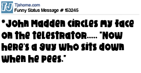 X *John Madden circles my face on the telestrator..... "Now here's a guy who sits down when he pees."