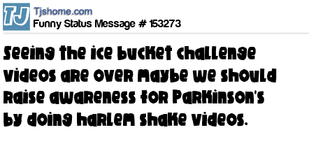 X says seeing the ice bucket challenge videos are over maybe we should raise awareness for Parkinson's by doing harlem shake videos.