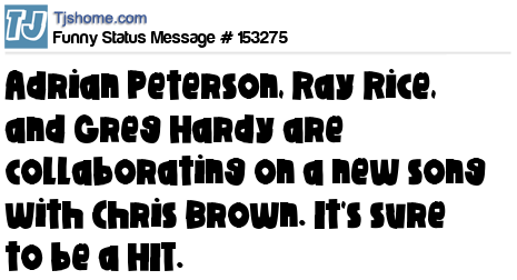 X Adrian Peterson, Ray Rice, and Greg Hardy are collaborating on a new song with Chris Brown. It's sure to be a HIT.