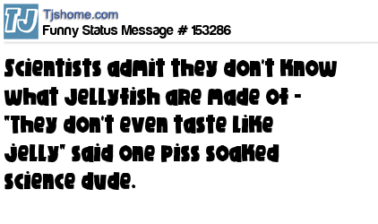 X says Scientists admit they don't know what Jellyfish are made of - "They don't even taste like jelly" said one piss soaked science dude.