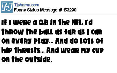 X If I were a QB in the NFL, I'd throw the ball as far as I can on every play... And do lots of hip thrusts... And wear my cup on the outside.