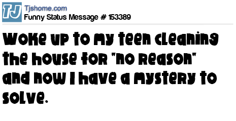 X says Woke up to my teen cleaning the house for "no reason" and now I have a mystery to solve.