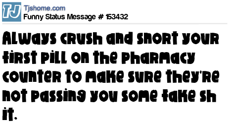 X Always crush and snort your first pill on the pharmacy counter to make sure they're not passing you some fake sh it.