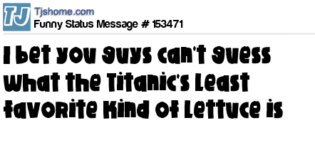 X says I bet you guys can't guess what the Titanic's least favorite kind of lettuce is