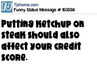 X Putting ketchup on steak should also affect your credit score.