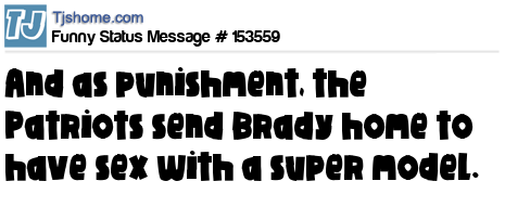 X And as punishment, the Patriots send Brady home to have sex with a super model.