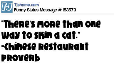 - # 169681 The saying "More than one way to skin a cat" Probably came from a Chinese food restaurant owner