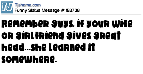 X Remember guys, if your wife or girlfriend gives great head...she learned it somewhere.