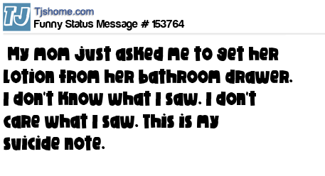 X says My mom just asked me to get her lotion from her bathroom drawer. I don't know what I saw. I don't care what I saw. This is my suicide note.
