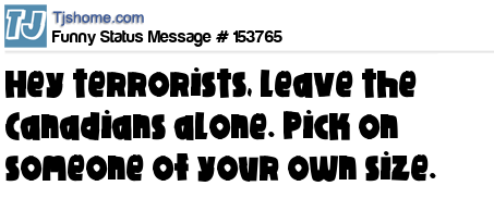 X says hey terrorists, leave the Canadians alone. Pick on someone of your own size.