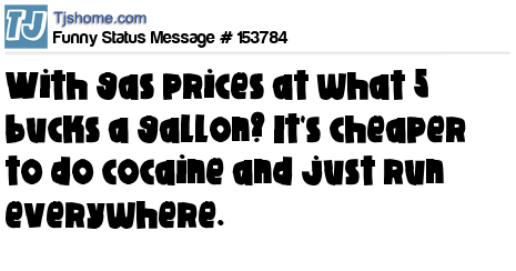 - # 188404 Gas prices are so expensive...it would be cheaper to buy cocaine and run everywhere!