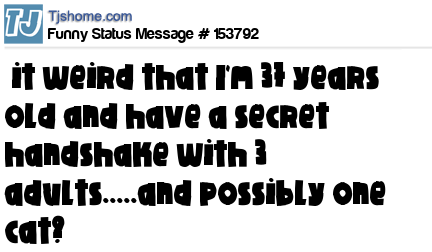 X says it weird that I'm 37 years old and have a secret handshake with 3 adults.....and possibly one cat?