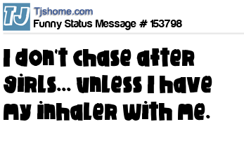- # 160244 I don't chase after girls, unless I have my inhaler with me.